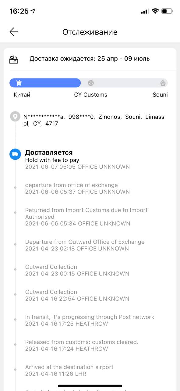 Делал заказ в amazon.com, доставка aramex, сейчас статуc Larnaca Express Hub, кто-нибудь в курсе, чего дальше ждать - на почту передадут или курьер? Если курьер, мне бы адрес поменять на друзей, тк сейчас пришлось ненадолго улететь