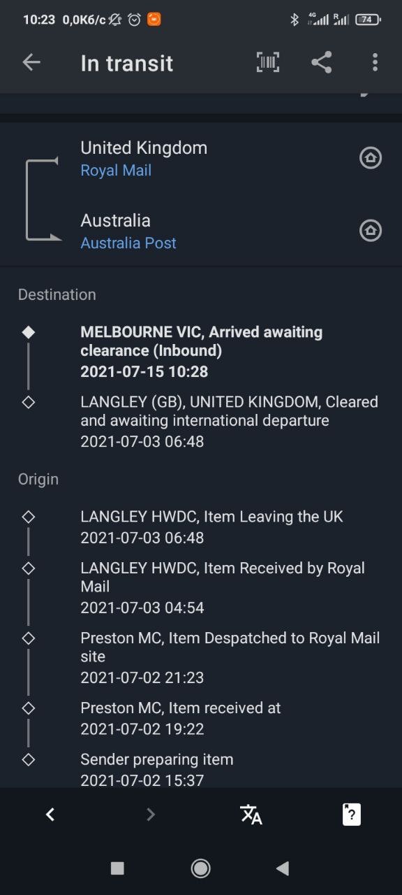 Но Королевская Почта Великобритании по какой-то неведомой мне причине решила отправить мою посылку в AU. 🙂