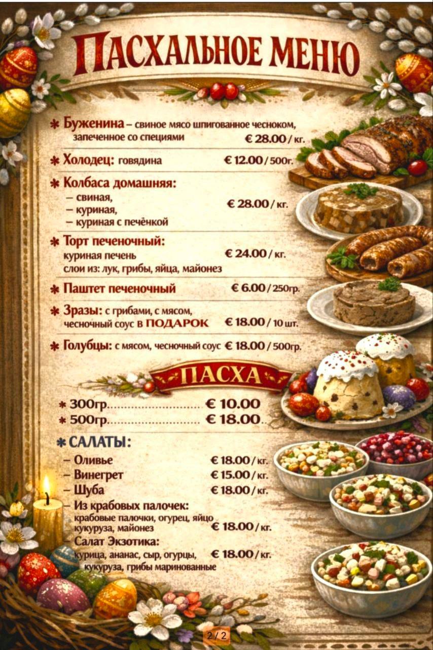 Также принимаем предварительные заказы к Пасхе.