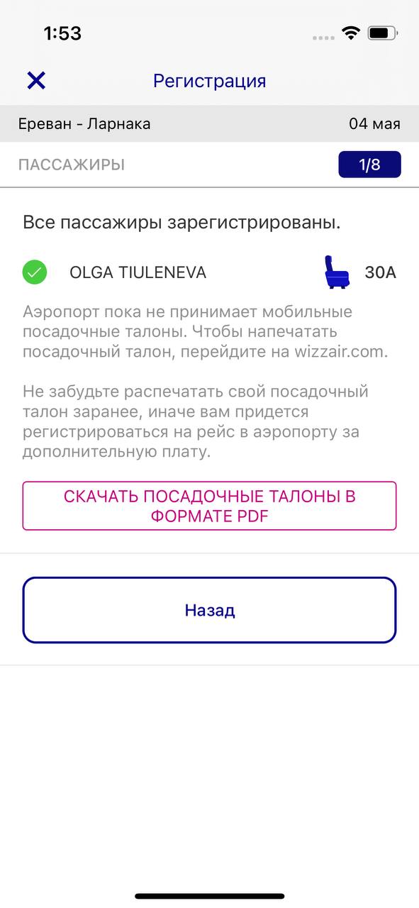 @shefannaaВидимо нововведения, потому что я летала в сентябре Wizz’ом из Еревана и обратно и регистрировалась на стойке бесплатно без посадочного/непосадочного 😕