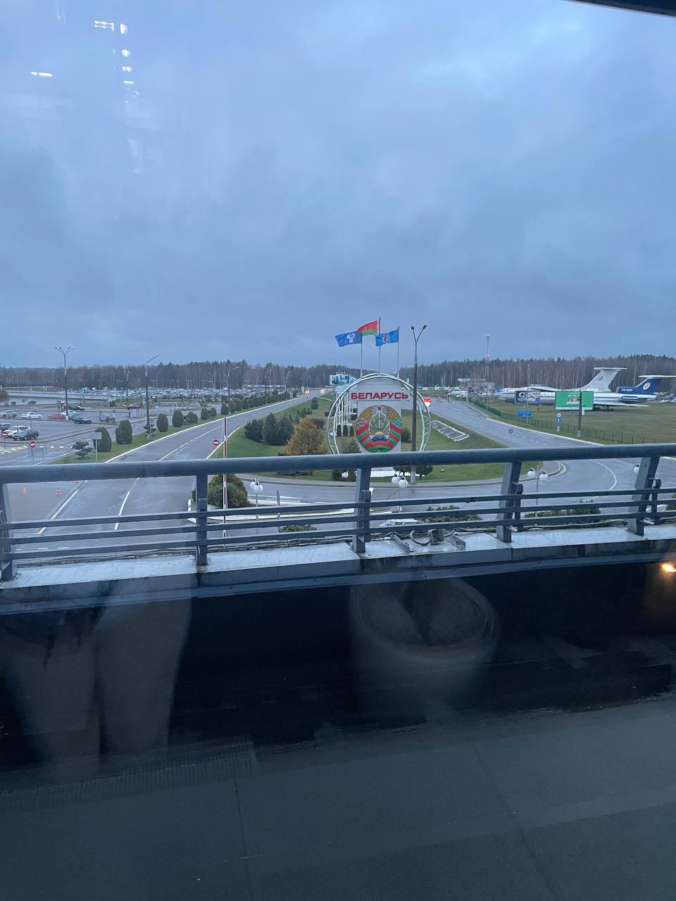 Очень оперативно получилось забрать багаж, зарегистрировались на рейс, и вот за окном красуется белорусский флаг.