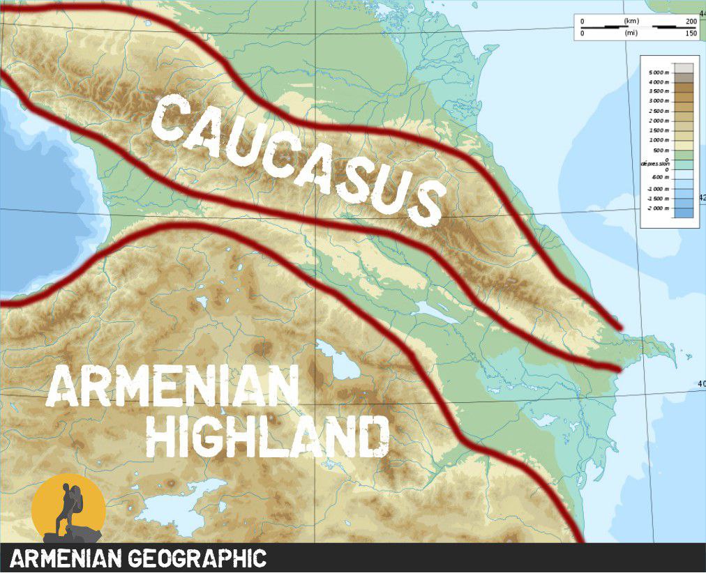 Вижу армянское нагорье на географической карте в районе Кавказа, который придумал Иисус, или по другим версиям Мухаммад или Яхве. Советы только обозначили на бумаге и уточнили российские карты.
