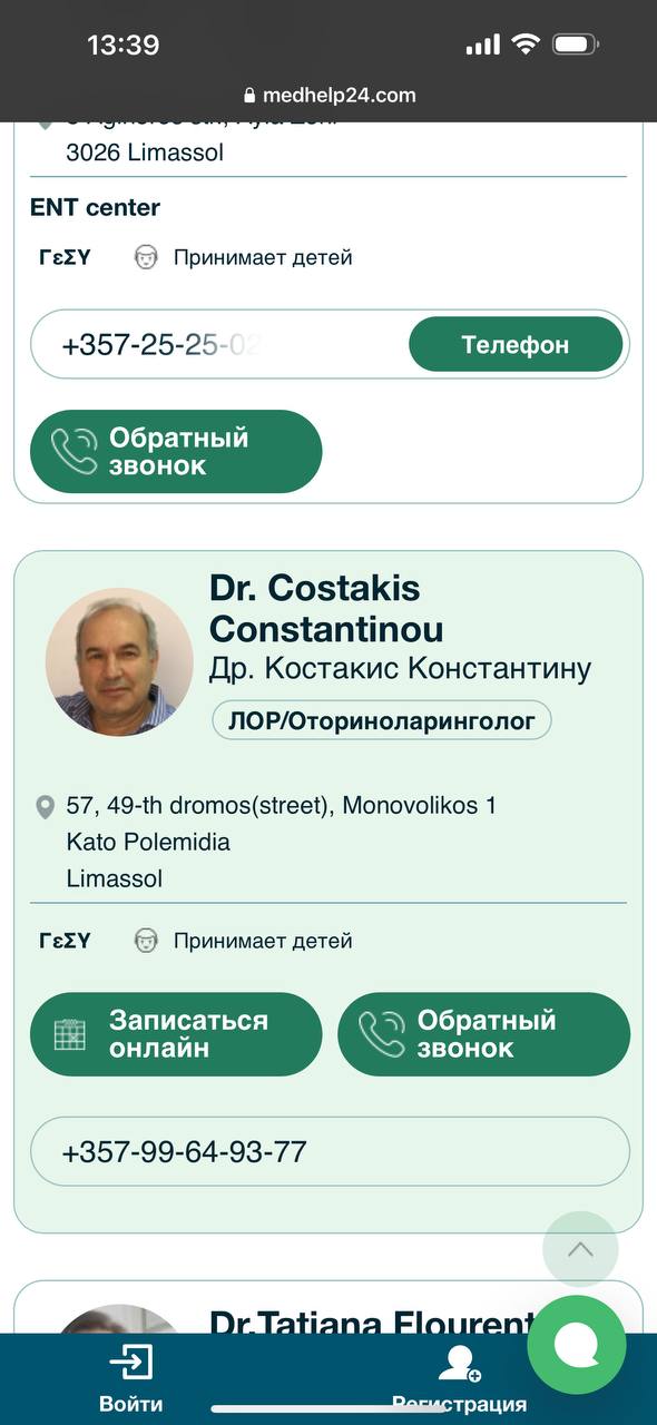 Имей его в виду. Не дай бог , что, конечно. Принимает и в Никосии, и в Лимассоле.Учился в РФ, отлично говорит по-русски.