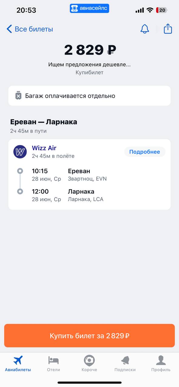 @5959997849Здравствуйте! Подскажите пожалуйста! Стоимость билеты на визэйр Ереван-Ларнака 2829₽ без багажа , написано что ручная кладь тоже не входит в стоимость тарифа! А при оформлении написано что ручная кладь входит! Подскажите кто то летал по такому тарифу ? У меня небольшая сумка , ручная кладь ! Если я оформлю билет за 2829₽ ! Могут ли в аэропорту запросить заплатить за багаж ?
