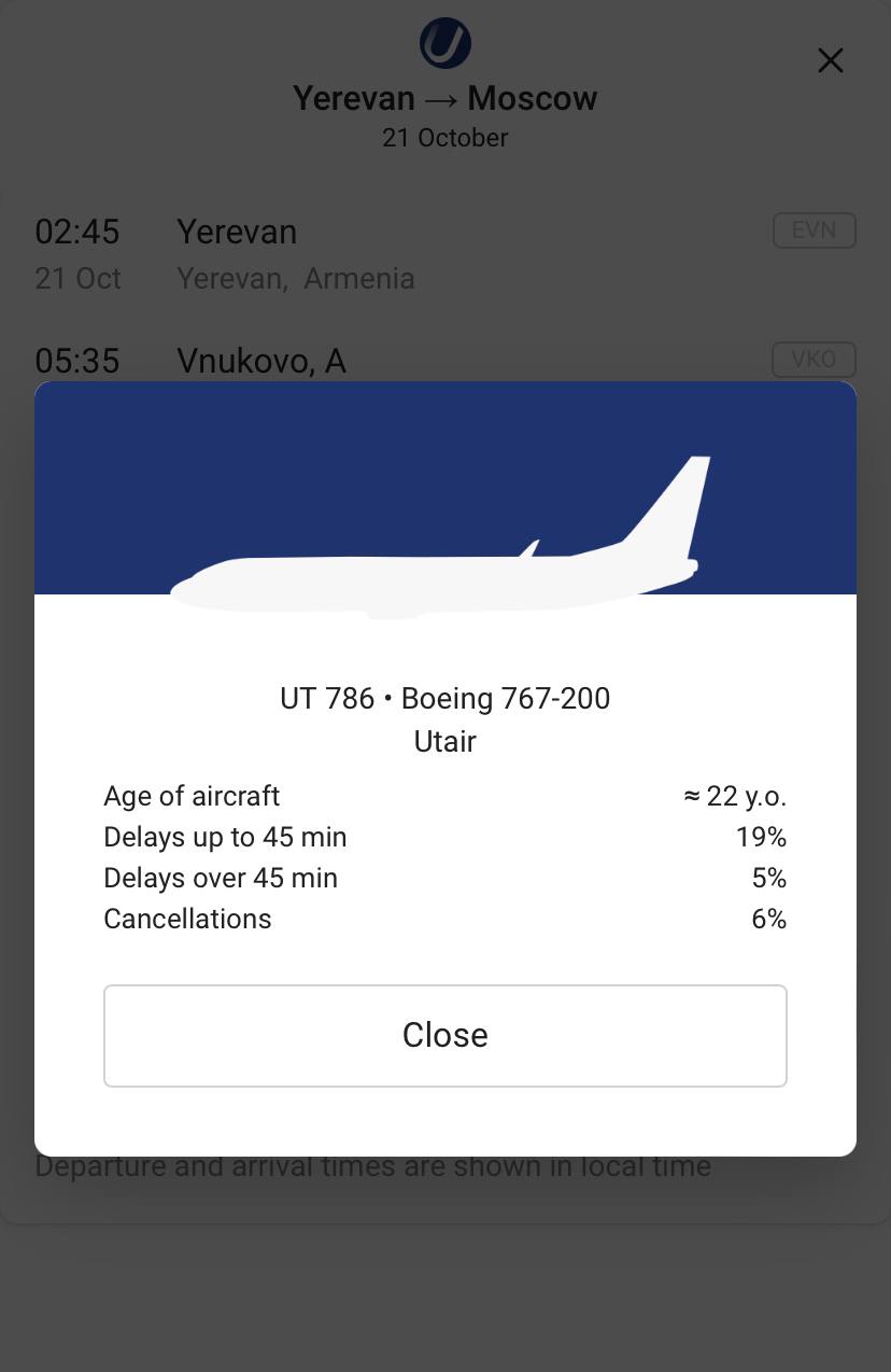 Utair Ереван 02:45- Москва
