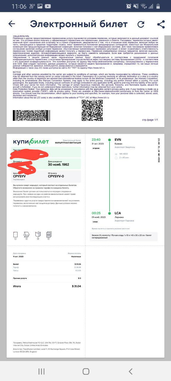 Хотела купить билет на wizz ларнака- ереван через " купибилет"