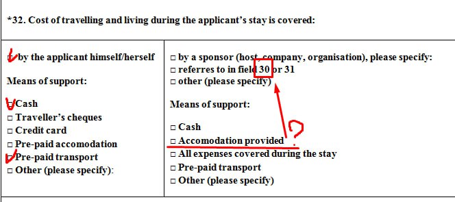 Добрый вечер! Можете подсказать -как заполнять в анкете п.32й - еду по приглашению, буду жить у приглашающего. Заполняется только левая или правая колонка? Или можно делать отметки в обеих? Спасибо!