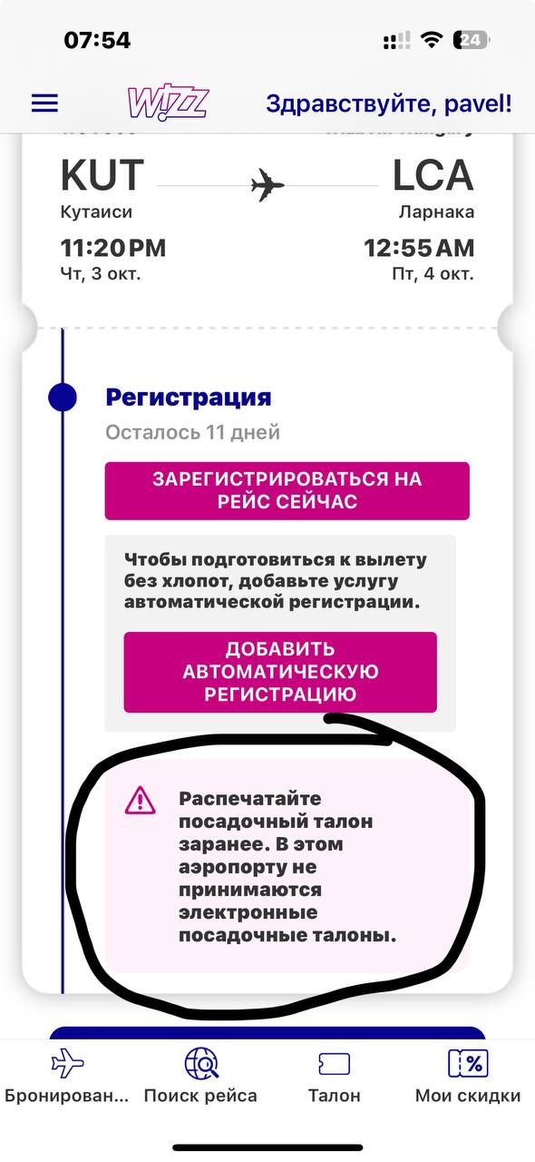 Зарегистрировала на оба рейса, но распечатать посадочный дал только на обратный перелет