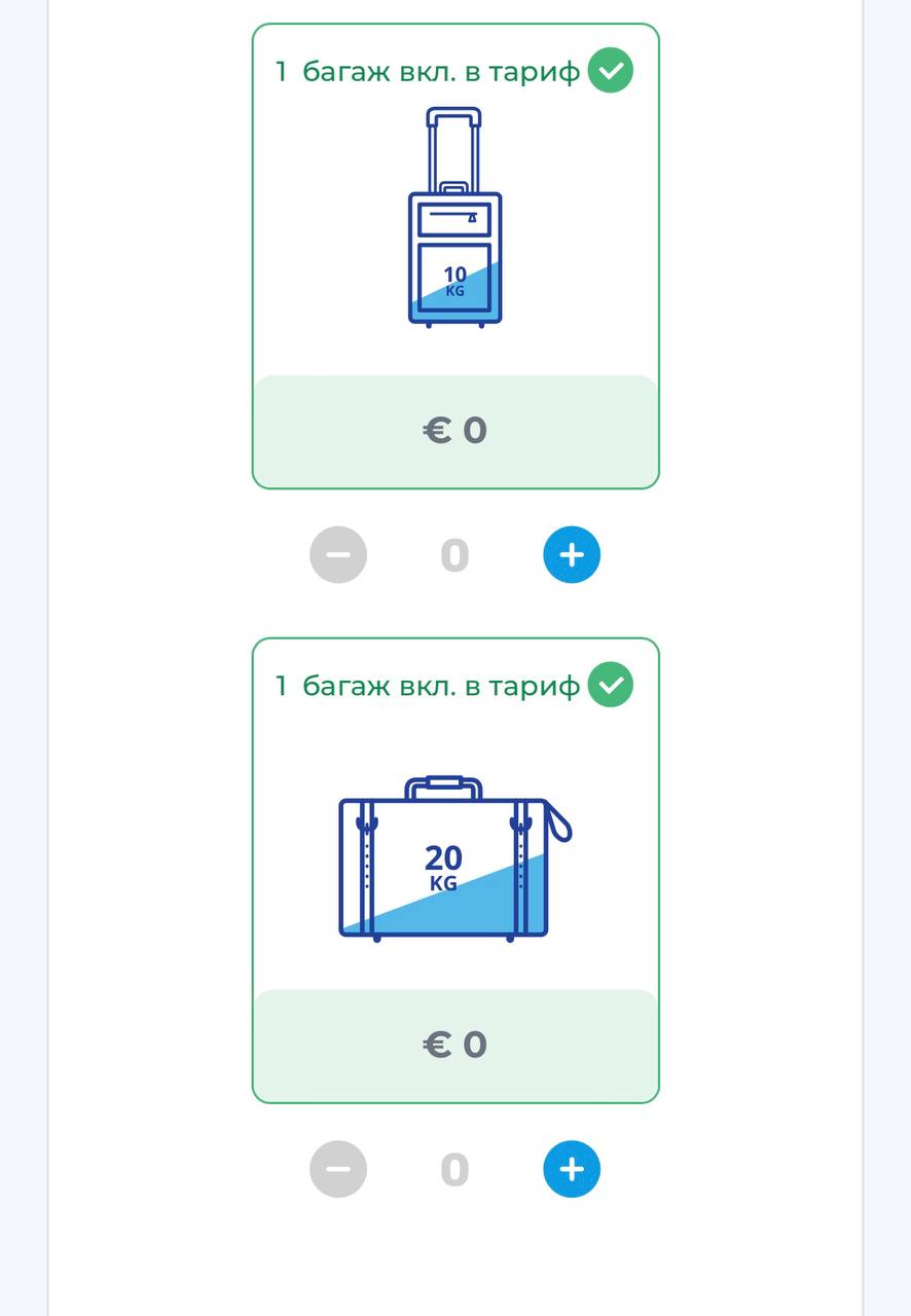 Добрый вечер, подскажите, пожалуйста, в купленный тариф от flyone входит регистрируемый багаж 10кг+20 кг. Могу ли я зарегистрировать чемодан, например, на 25 кг? Или мне нужно делить, как показано на картинке?