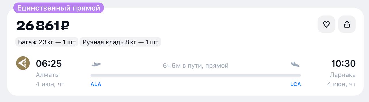 @Chezzy1970🇨🇾 Air Astana открыла продажу билетов на прямые рейсы в Ларнаку с 2 июня.