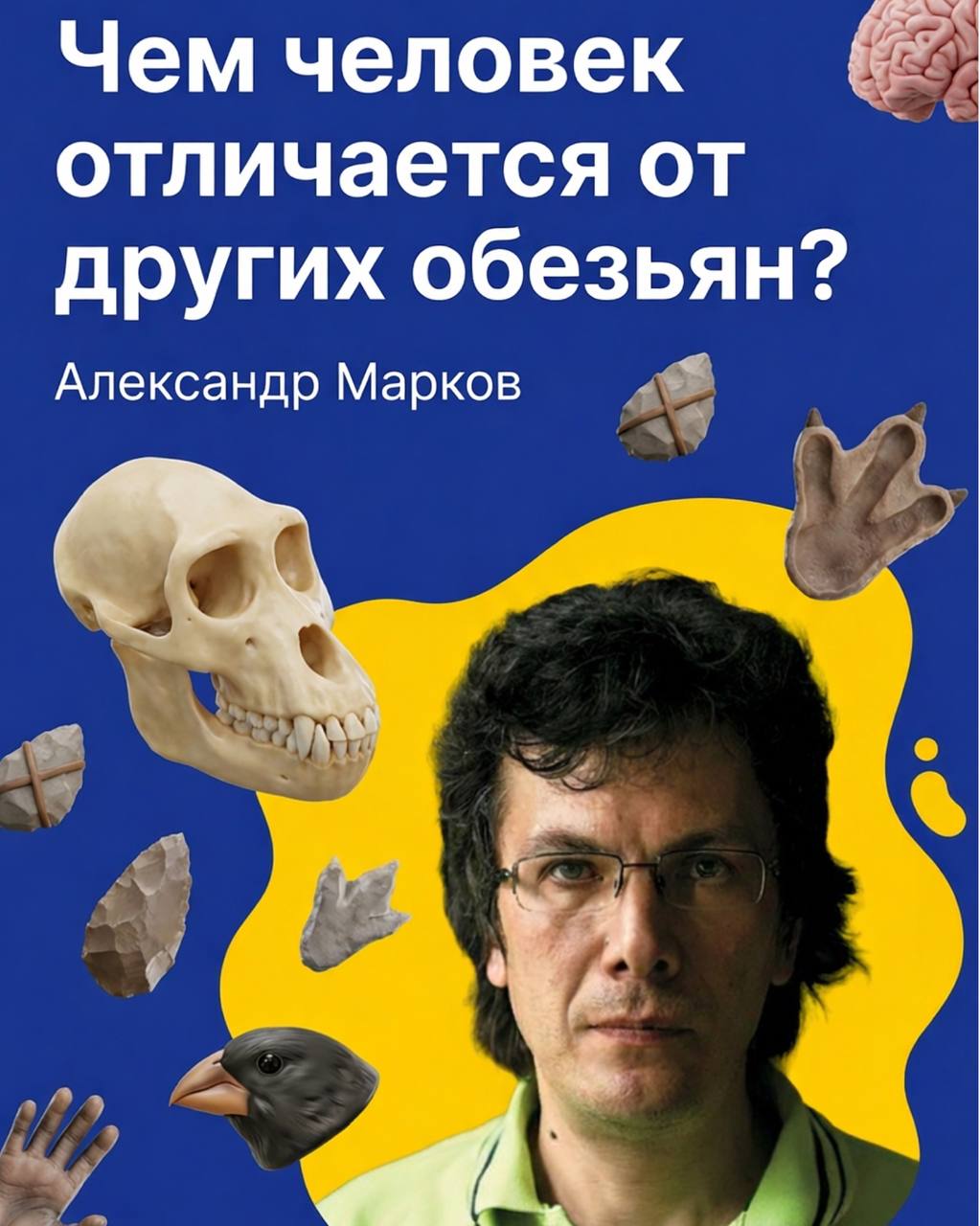 На лекции Александра Маркова разберёмся, почему человек — тоже обезьяна, какие особенности сделали нас уникальными и как эволюция привела к прямохождению, сотрудничеству и социальным связям. Понятно, научно и без мифов.