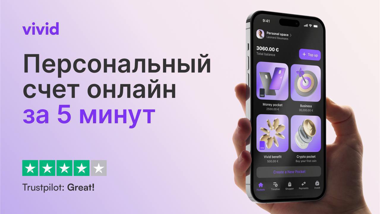 Откройте персональный счет в Vivid онлайн за 5 минут!