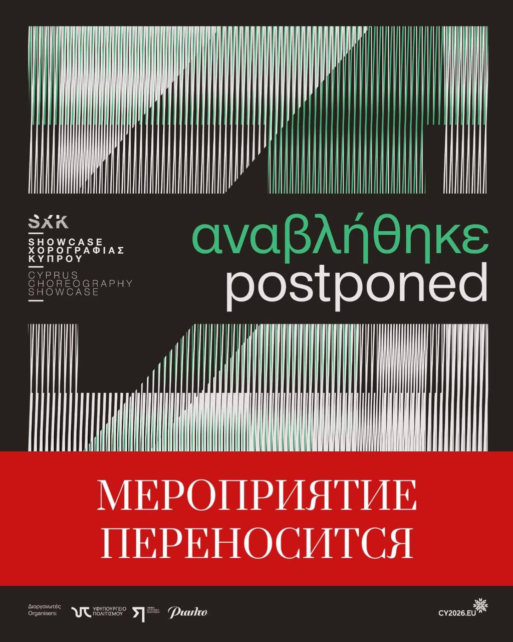 Департамент современного искусства Подминистерства культуры и театр Rialto сообщают, что проведение 4-го Кипрского фестиваля хореографии, которое планировалось с 6 по 8 марта 2026 года, перенесено на сентябрь 2026 года.