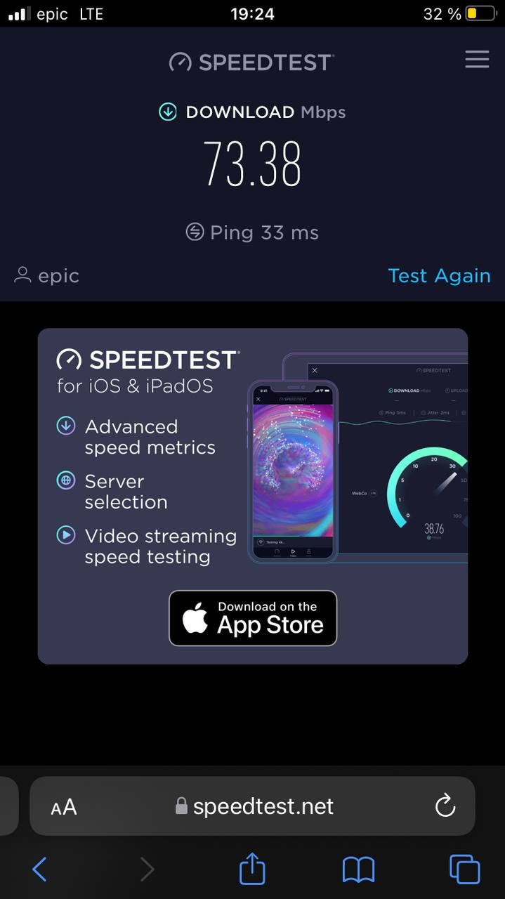 А у эпика или ситы на мобильном интернете есть у кого-нибудь результаты? Хотя бы средне по палате знать хочется