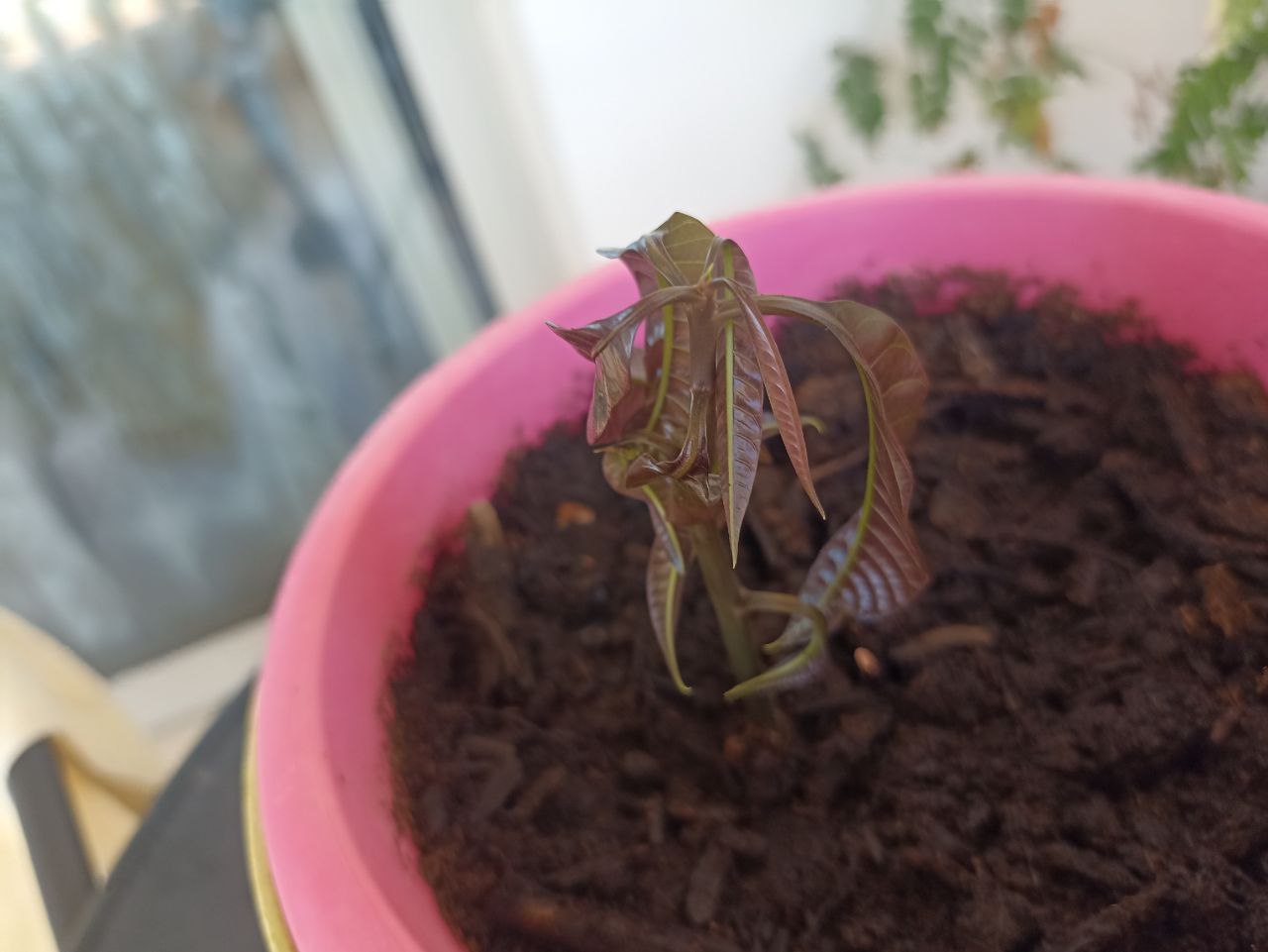 Вопрос садоводам-любителям: прорастил я косточку манго, а листья у него не расправляются. Это так и должно быть или много света может ? Или чего-то не хватает наоборот?