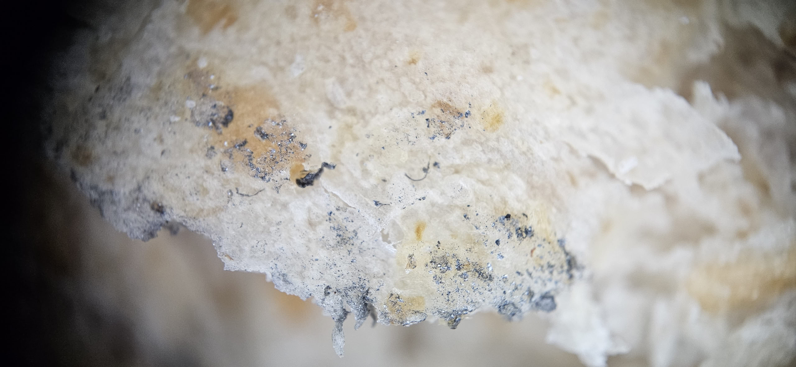 Купил хлеб и два эклера. Оба эклера внутри с плесенью. На хлебе нашёл следы, видимо, машинной смазки и металлических микроопилок от машинки для нарезания (на фото). Сам хлеб оказался с ощутимым запахом кислоты, как будто они тогда консервантов не жалеют прям.