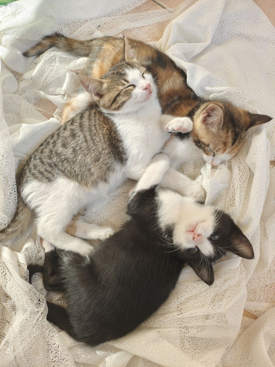 Ставлю всех в курс, что котозавод набирает обороты, котаны в свои 2.5 месяца набрали вес за килограмм и продолжают набирать массу ударными темпами на премиальных кормах Royal Canin 👑 (молочка, паштет, сухой корм). Умеют жрать, спать, ср*ть, играть, урчать и ласкаться, в связи с чем ищут себе нового двуногого кожаного раба, поскольку текущий планирует вскоре отлучиться с Кипра и оставить их некому. Стало быть, на улице эти домашние животины, выросшие в тепличных условиях safe space, пропадут, особенно в надвигающуюся холодную дождливую зиму 🥺