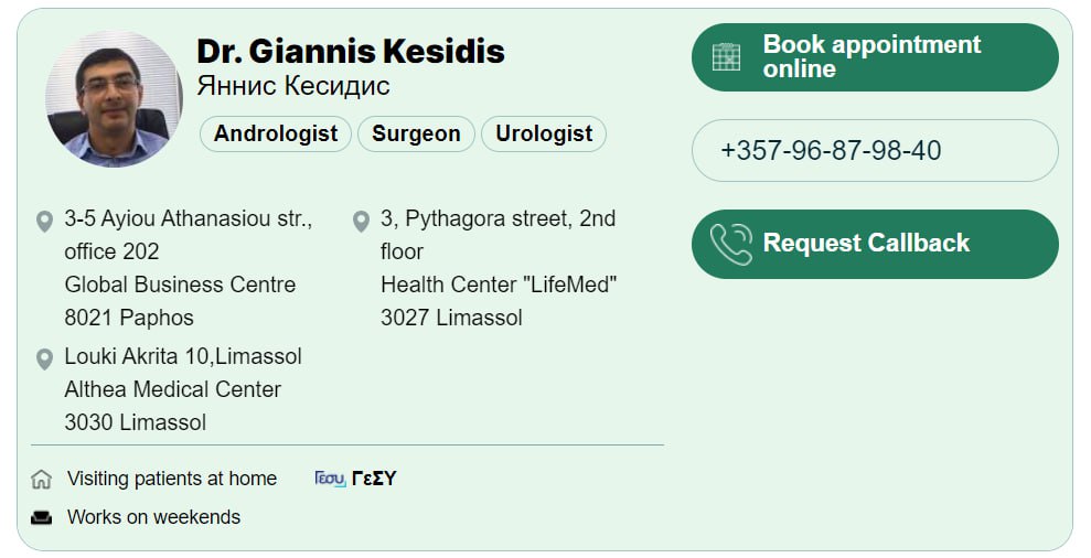 96 879840 Янис Кесидис хирург уролог Лимасол ,Пафос