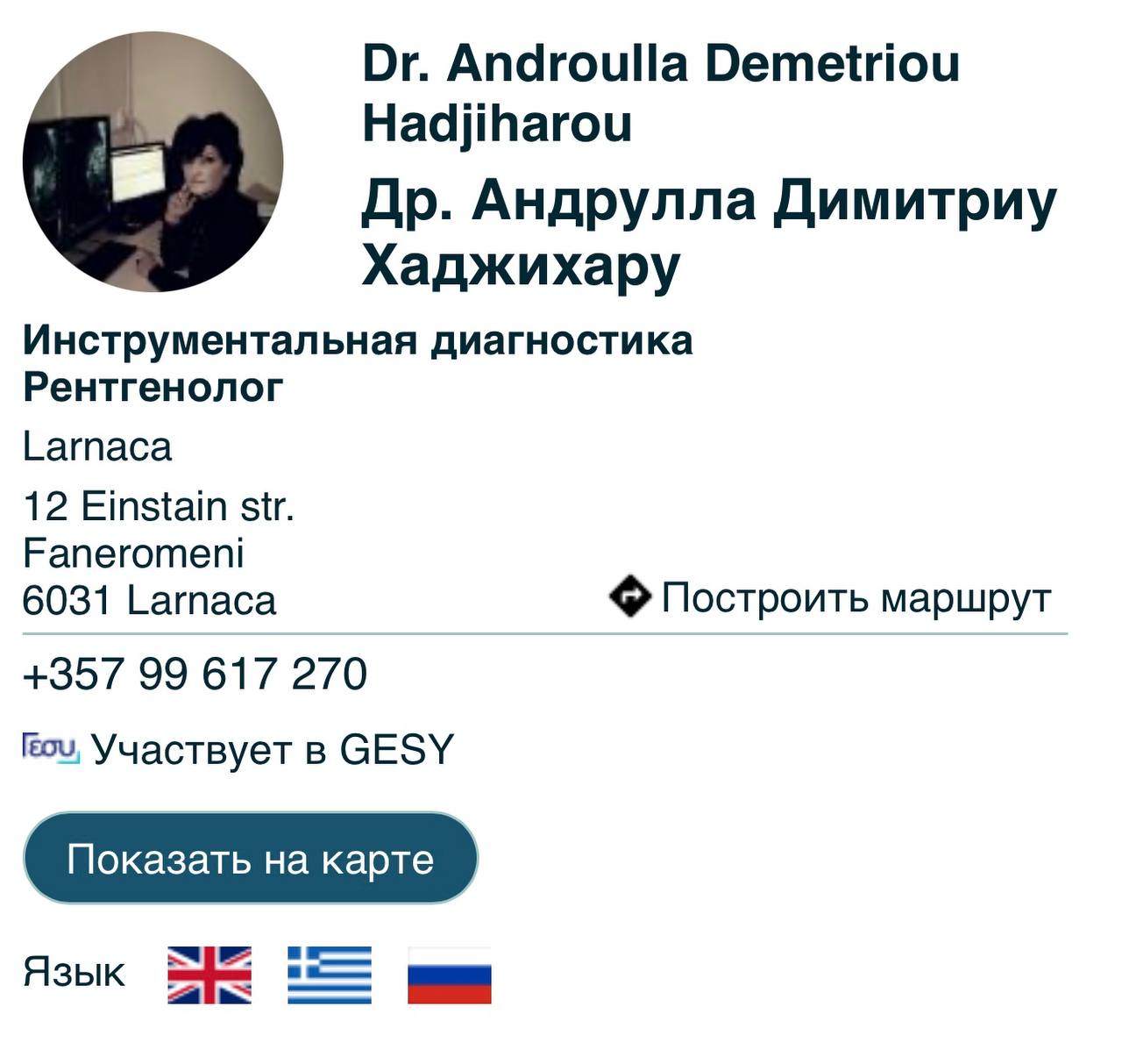 Не знаю какой у вас город, но если не принципиально, я была в Ларнаке у нее