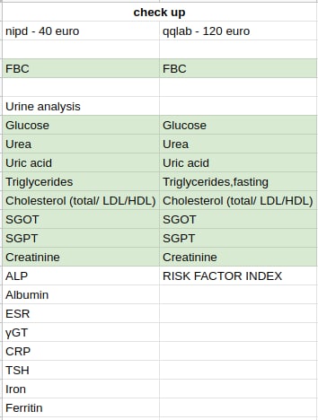 решил сходить сделать чекап, страховая покрывает до 200 евро в год. коллега ходил в qqclab, заплатил 120 евро, тоже хотел к ним сходить, но потом ради интереса зашёл на сайт nipd и у видел, что у них есть пакекты анализов и как раз есть "chek up" и стоит он 40 евро, туда и анализ мочи включён. что-то как-то слишком дёшево для кипра :)