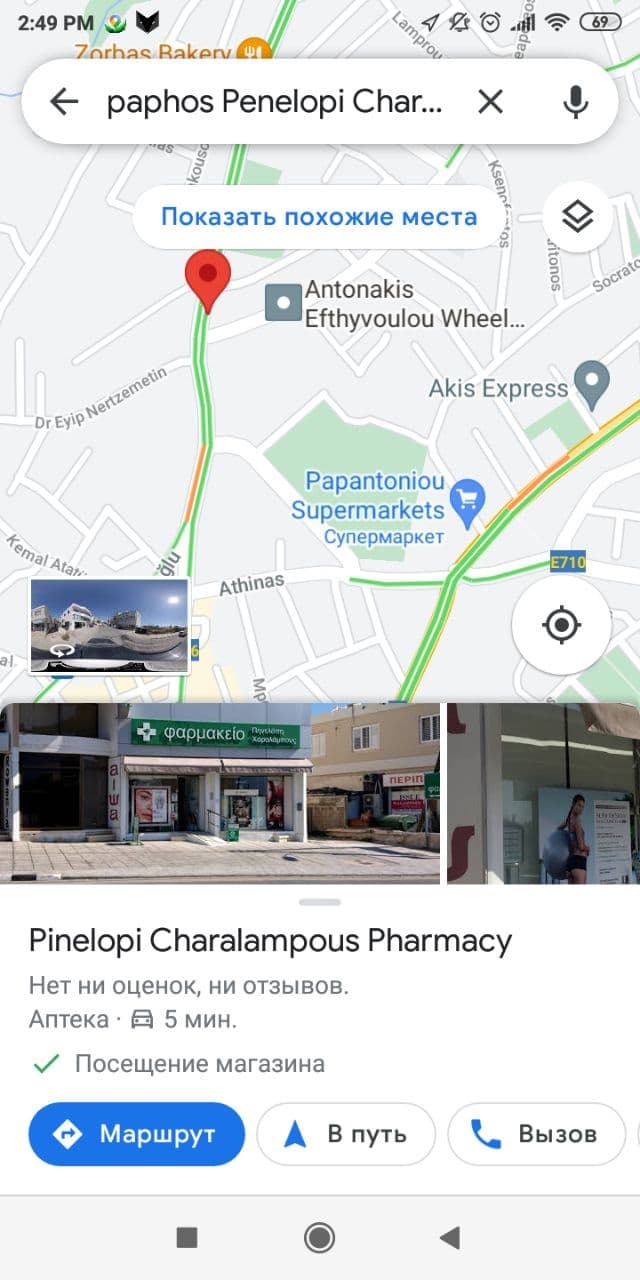 я спрашивала сегодня про дежурные аптеки в Пафосе. отчитываюсь. по предложенной ссылке (благодарю!) указаны две аптеки - названия и адреса. естественно, гугл не находит их по адресу. еще предлагается скачать приложение - скачала, аналогично: no matching results ((( в итоге гугл нашел по названию, но одна из аптек помечена как "закрыто навсегда" (не проверяла). а вторая - оказалась на месте и работает. в итоге квест завершился успешно (лекарство купила)