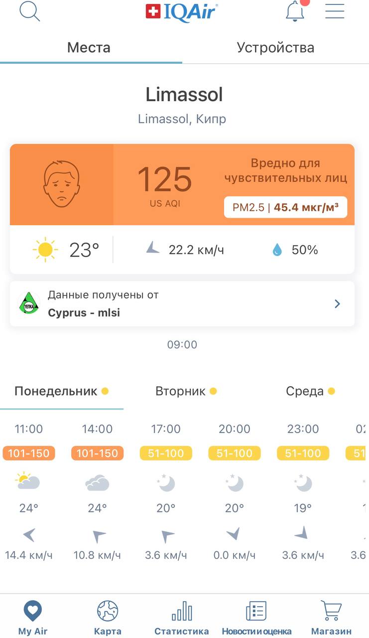 В Лимасоле сегодня очень плохой воздух для бронхолегочных больных;