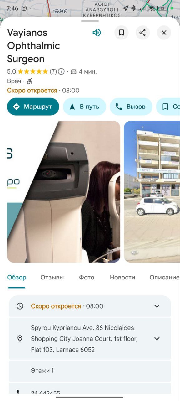 посоветуйте, пожалуйста, офтальмолога в Ларнаке, нужен осмотр сегодня.