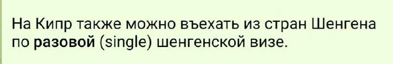 - обладатели многократных виз Шенген, ВНЖ/ПМЖ ЕС и ресипта (reciept) Кипра (о подаче документов на ВНЖ) со штампом, обладатели национальной визы Кипра, а также украинских (любых), грузинских и молдавских биометрических паспортов могут лететь любым рейсом на Кипр, без выхода в Шенгенской зоне. Болгария 🇧🇬, несмотря на вступление в Шенген, продолжает выдачу краткосрочных национальных виз, по которым также можно было ранее въезжать на Кипр.
