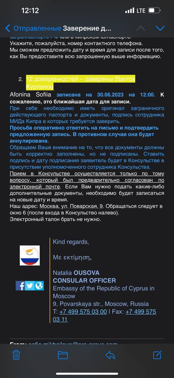 @OliaKotiaДоверенность (вашу подпись) заверяют в консульстве Кипра, текст ваш