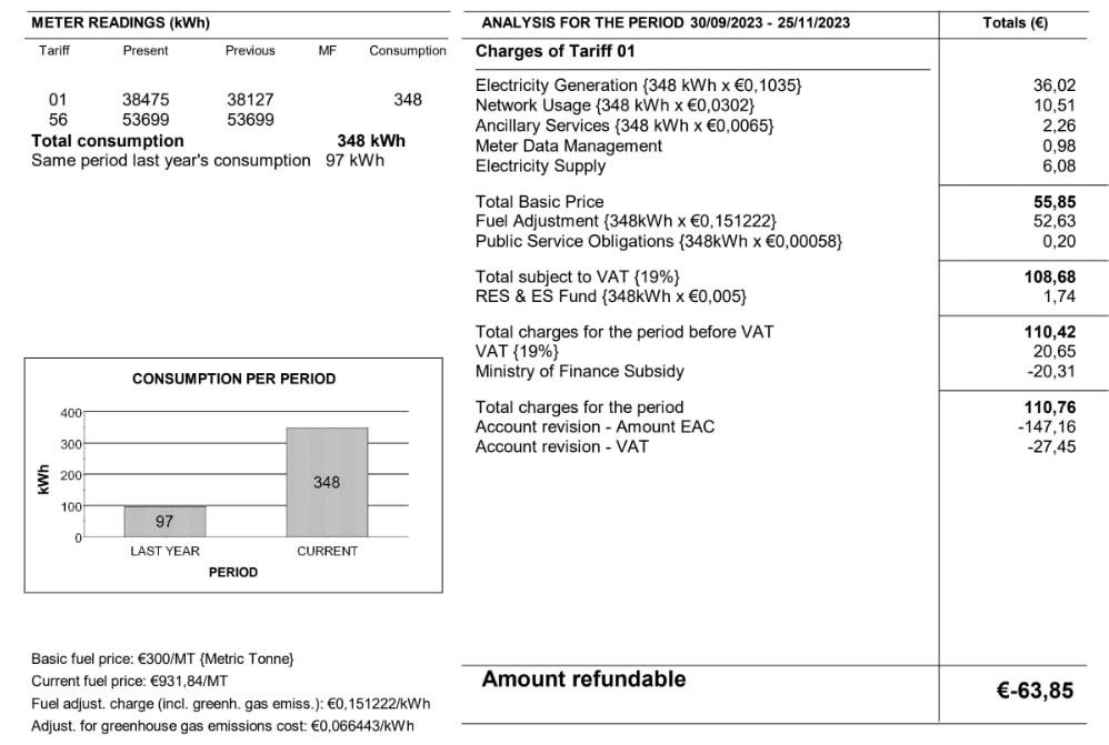 В счёте указывается сколько кВт/ч переносится на следующий период