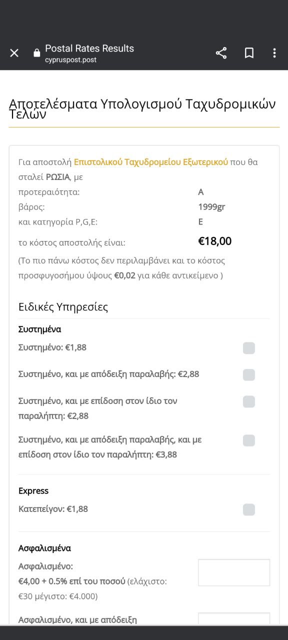 Добрый день, подскажите, пожалуйста, а через местную почту Кипра можно отправить посылку в Россию?