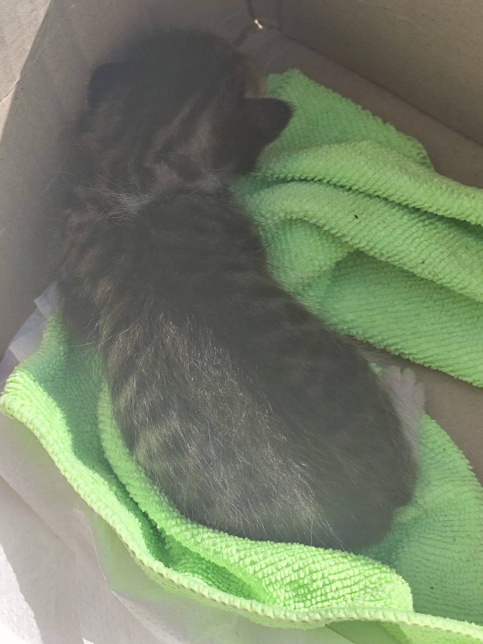 Оставили в коробке на улице, прям на солнце, совсем маленького котенка… ЛИМАССОЛ!
