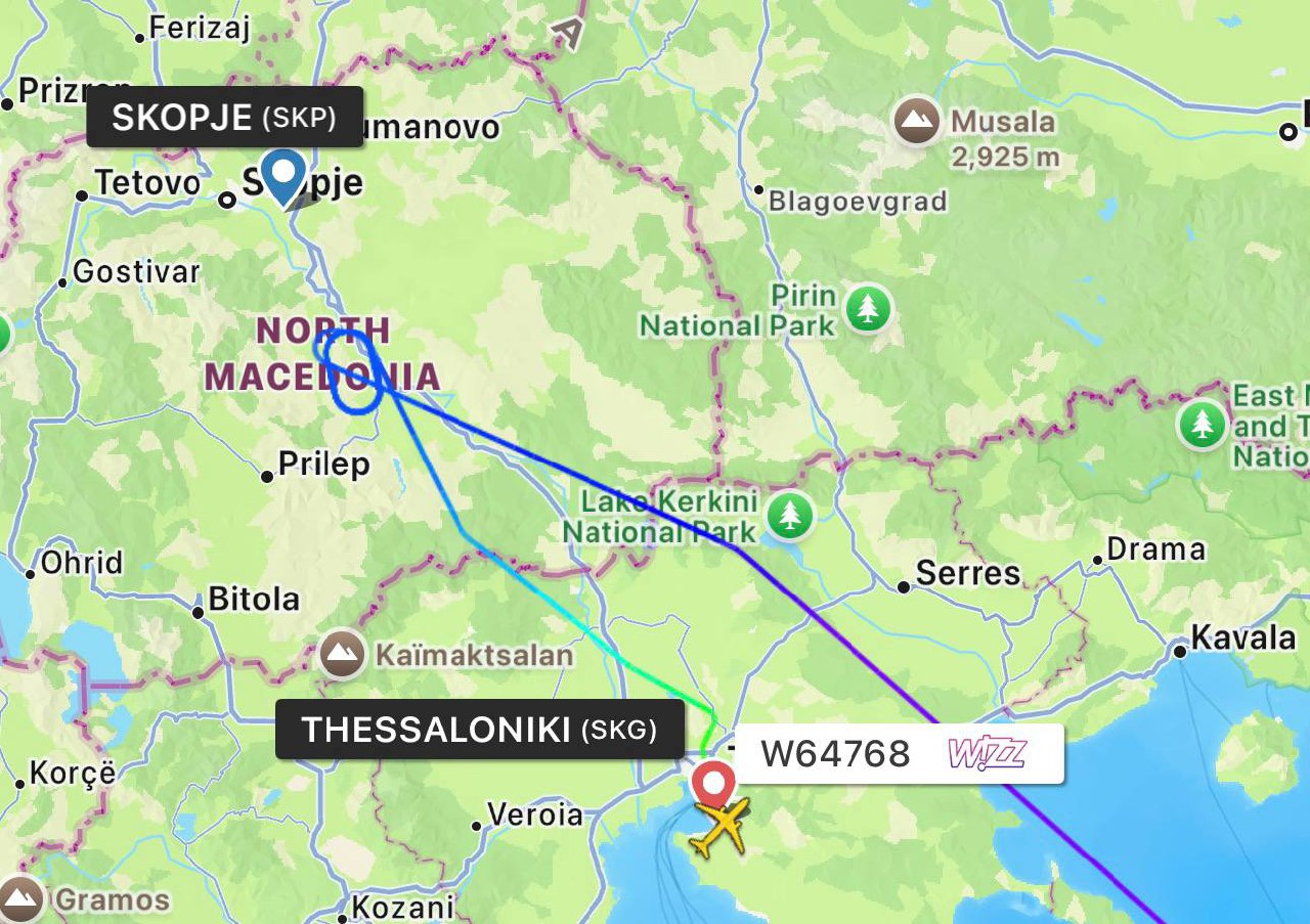 Вчера, 20 декабря, самолёт авиакомпании Wizz Air, выполнявший рейс W64768 по маршруту Ларнака - Скопье, не смог приземлиться в Северной Македонии и был вынужден направиться в Салоники.