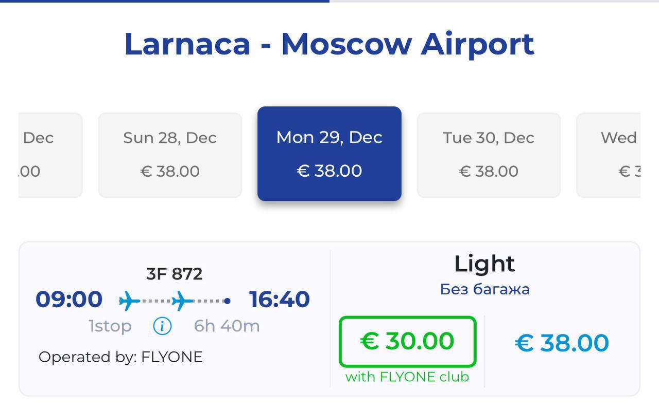 Из Ларнаки или Пафоса в Ереван начиная с ноября почти все даты по такой цене.