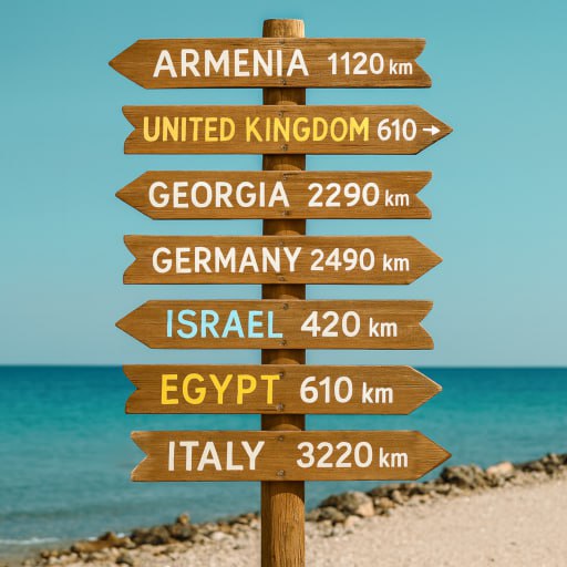 Албания, Армения, Австрия, Бахрейн, Болгария, Великобритания, Венгрия, Германия, Греция, Грузия, Дания, Египет, Израиль, Иордания, Испания, Италия, Латвия, Ливан, Литва, Мальта, Молдова, Нидерланды, Норвегия, ОАЭ, Польша, Катар, Румыния, Сербия, Финляндия, Франция, Чехия, Швейцария, Швеция, Северная Македония, Словакия.