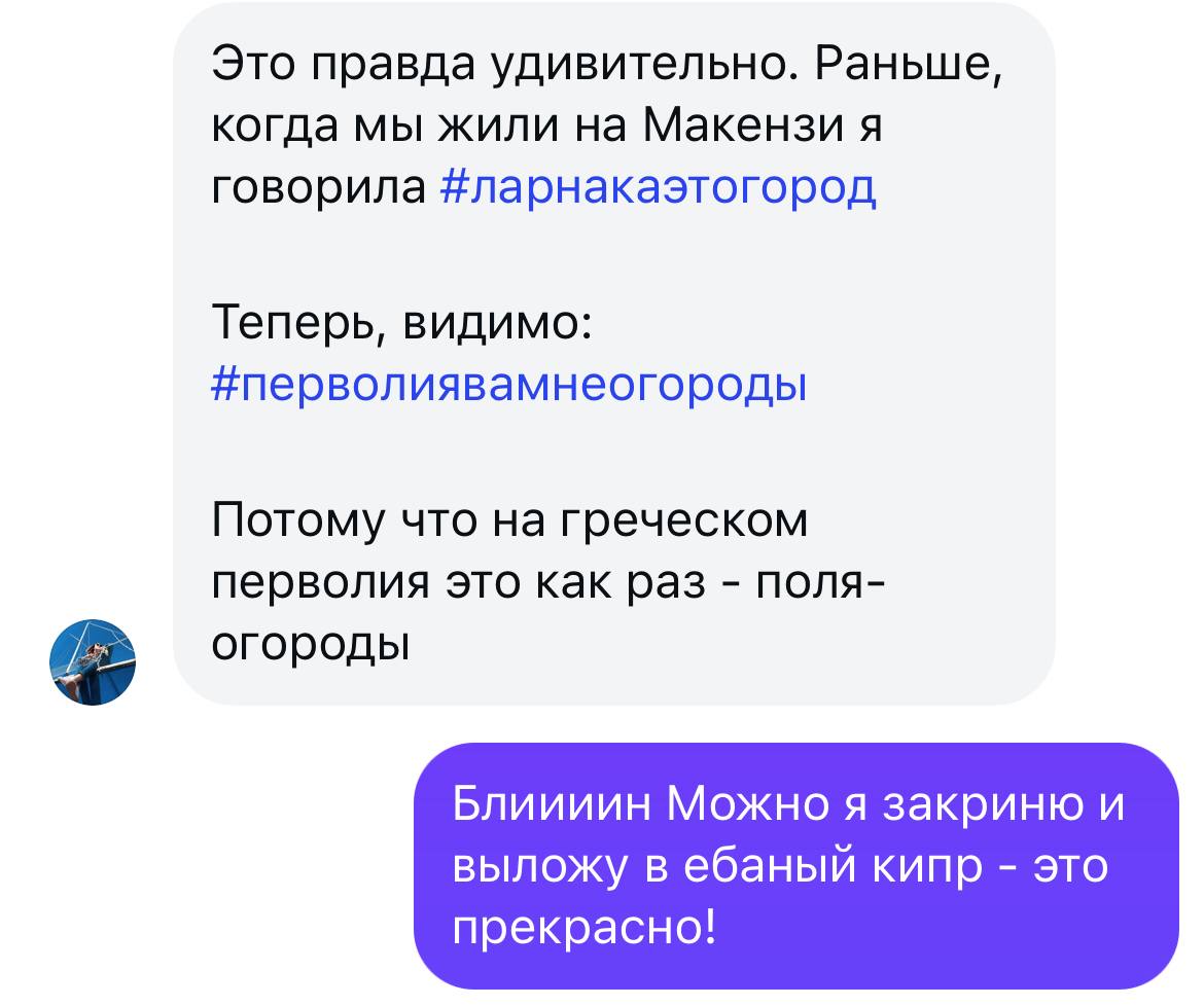 Он - о да?? А у вас совсем не российский акцент, у вас английский с кипрским акцентом, я подумал вы из греции может или из европы. А где у вас работа? А вы бьютишен или хэирдрессер? Я знаю там рядом салоны есть. Там наверное работают русские. а я тоже русский язык сейчас учу. Очень сложно, но столько русских клиентов. Я учу в дуалиего. И еще песни русские.