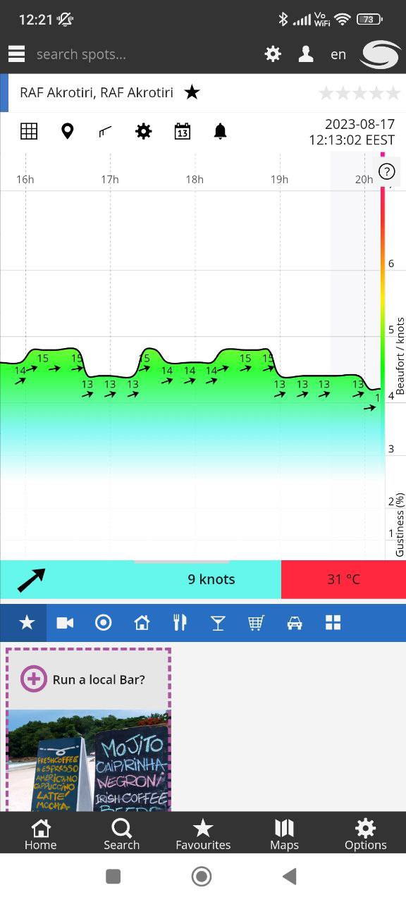 По прогнозу (виндгуру) сегодня около 18:00 на Курионе будет 10 узлов, а на Акротири 14. На сколько это правда? Вчера к 18 приехал на Курион и ветер очень резко стих. Есть ли смысл сегодня пробовать ехать на Акротири? спасибо