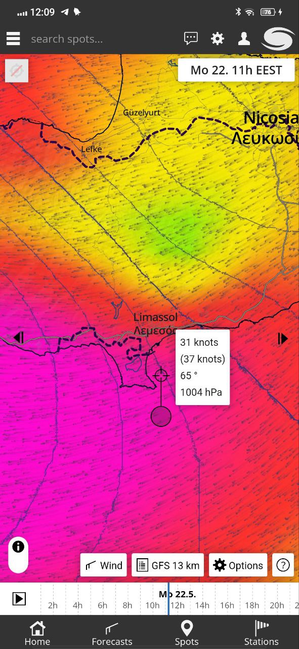 Всем привет! В городе (точнее за городом Limassol) ветер уже в течение часа дует 8- 10 kts. Можо гидрофойлить но пришла туча, возможен кикс по ветру кратковременный! Cheers 🌞