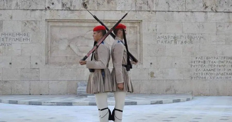 Каждый час два эвзона принимают торжественную позу, которая образует слово «ΟΧΙ» - слово, навсегда вписанное в историю Греции.