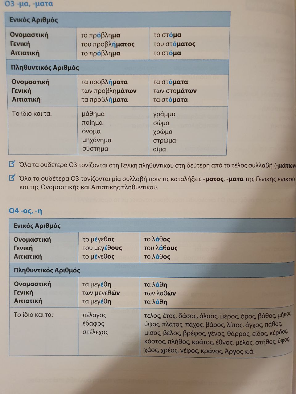 Насчет примера множественного числа: το δάσος - τα δάση. Так формулируем множественное число в этой группе. Το λάθος - τα λάθη. Το μέρος - τα μέρη. κλπ κλπ