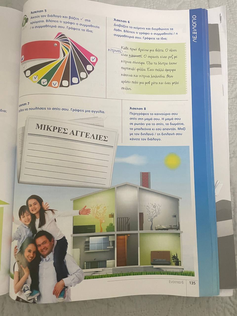 Добрый вечер, кто-нибудь может срочно прислать фото страницы 135 в ΚΛΙΚ Α1. Ребёнку задали, а в учебнике нет нескольких страниц:-(
