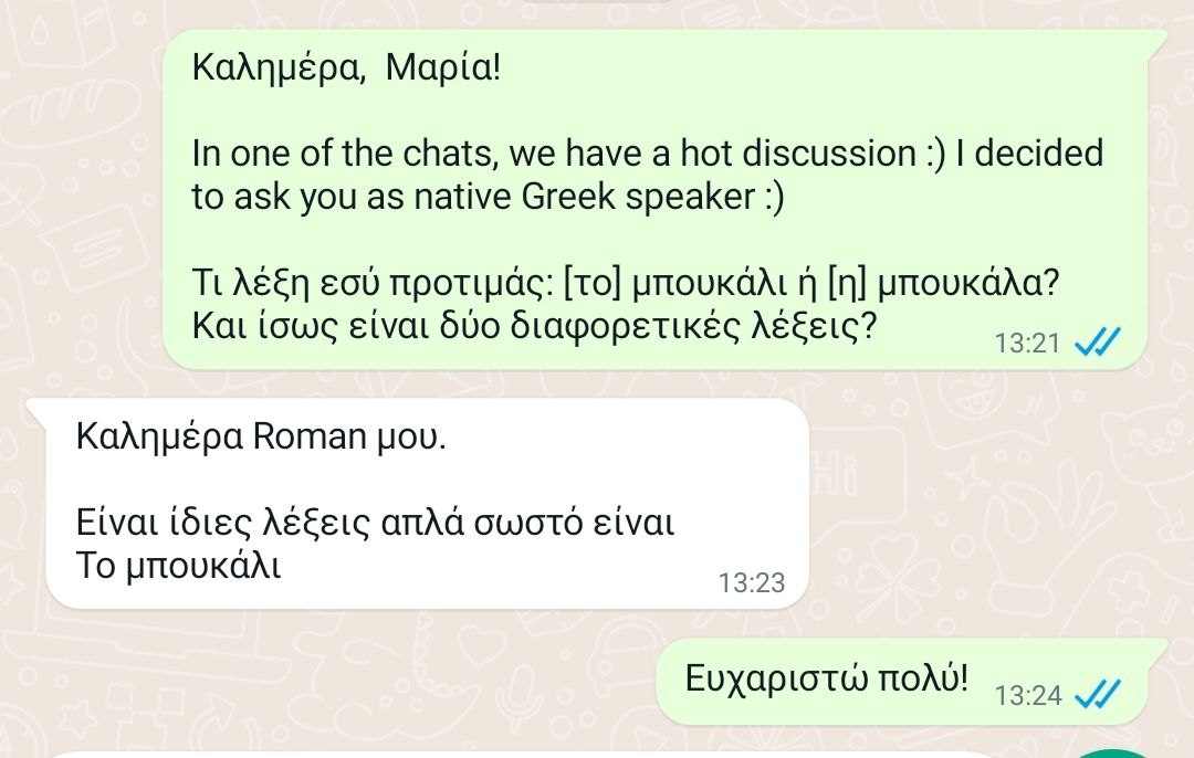 @perpetuum_mobile_cyВся «соль» греческого на Кипре, что в школе учат ново-греческий, выходят на улицу и δεν υπάρχει πρόβλημα становится автоматически ДЭН ЭШИ ПРОВЛИМА. 😆 если хотите быть ближе к народу, можно иногда подыгрывать и тоже говорить что-то на местном диалекте. Однако, следует помнить, что в новостях по тв местные ведущие не говорят на диалекте! И если надо сказать τώρα, они не скажут τωρά в эфире, а на улице запросто 🤓