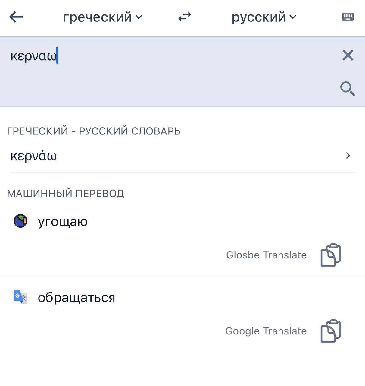 @AllmirchikВот например вторая строчка, если загнать в гугл переводит как «что ты ищешь в те моменты,которые ушли» а если по словам разбирать, γυρεύω -поворачиваться, а в связке с τι получается что ищешь, чем отличается от фразы τι ψάχνεις;