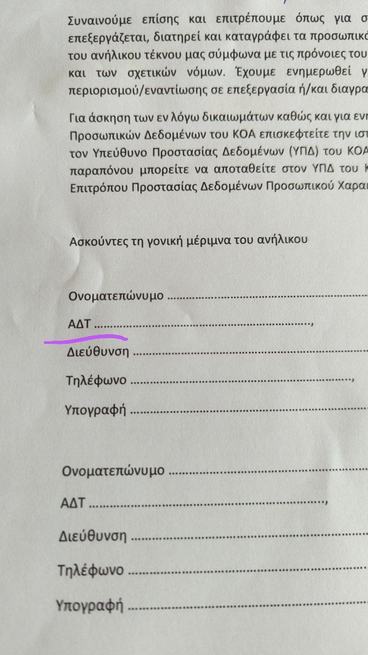 Подскажите, пожалуйста, как расшифровывается аббревиатура ΑΔΤ в контексте сведений о себе?