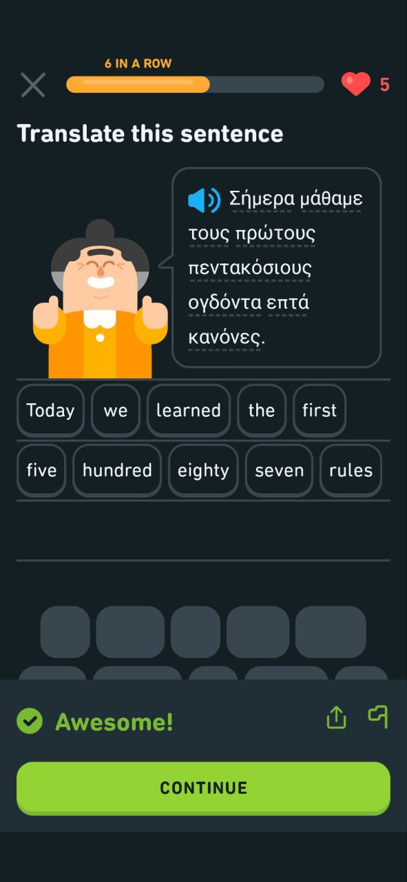 С этой совушкой (в отличие от старой) ни в чем разобраться не возможно. Дуолинго сейчас первратилось в игровое приложение, имитирующее изучение языков.