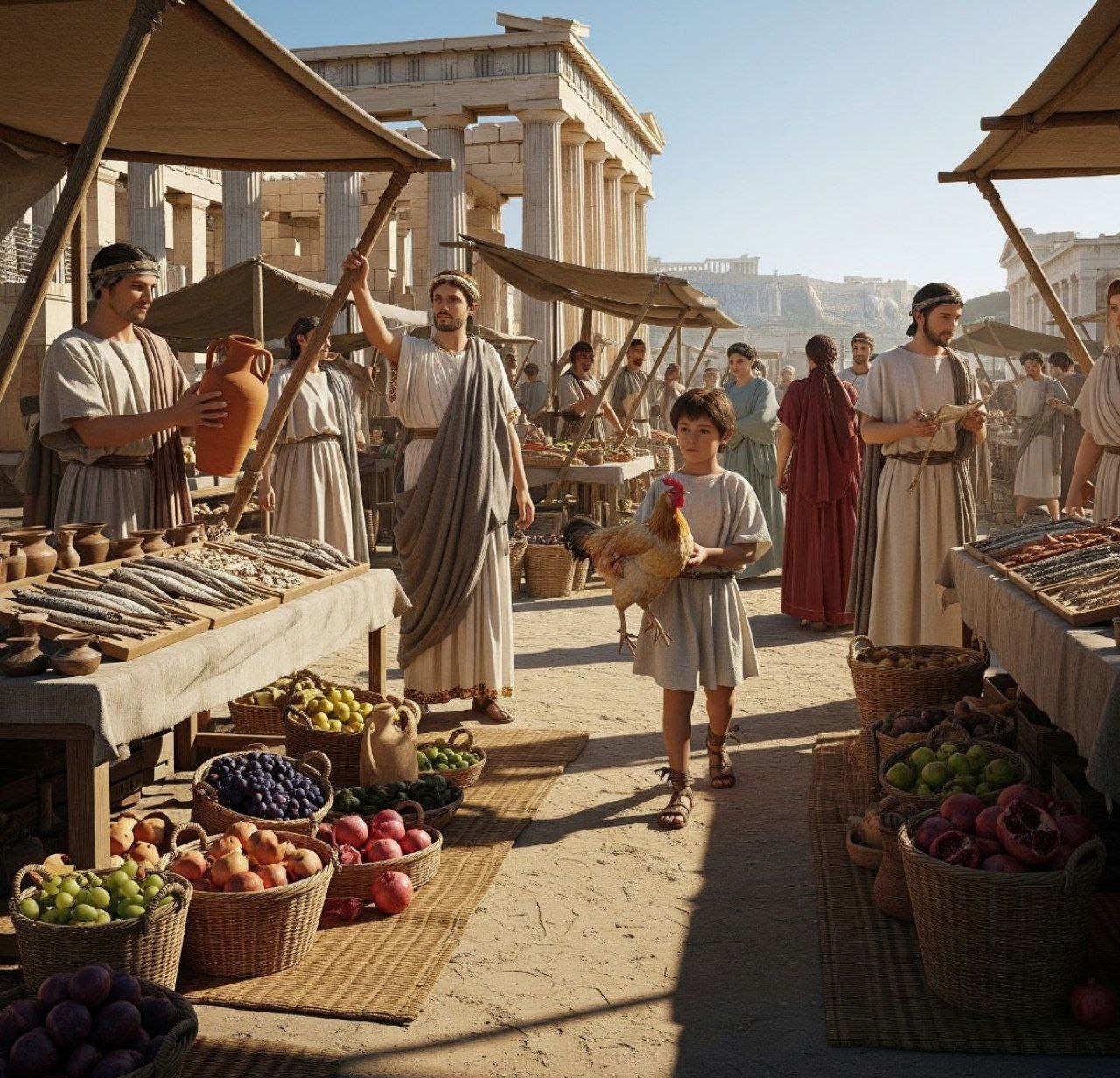 αγορές: από το ουσιαστικό αγορά < αρχαία ελληνική ἀγορά (=τόπος συγκέντρωσης, και στη συνέχεια «τόπος εμπορίου»).