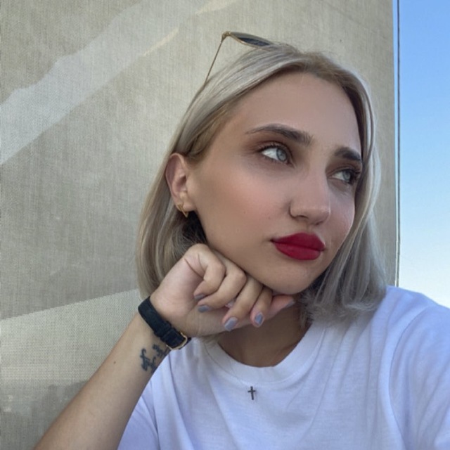 На второй картинке — девушка едет в автобусе и слушает музыку. У неё светлые волосы. Она смотрит в окно внимательно, не улыбается, спокойная. После этого спрашивали про личный опыт: езжу ли я на автобусе на Кипре, на чём передвигалась в России, почему в России чаще пользовалась метро — потому что много машин и пробок.