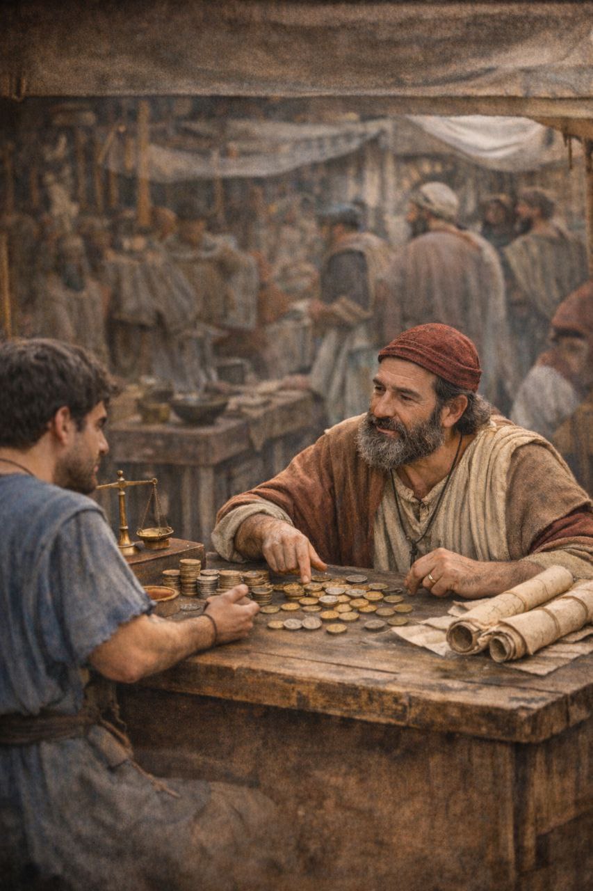 А всё потому, что в древности ростовщики располагались в центральных местах города и вели свои дела за прилавками — πάγκος(сейчас: рыночный прилавок, столешница) или за столами–τραπέζι. Именно за ними решались все финансовые вопросы.