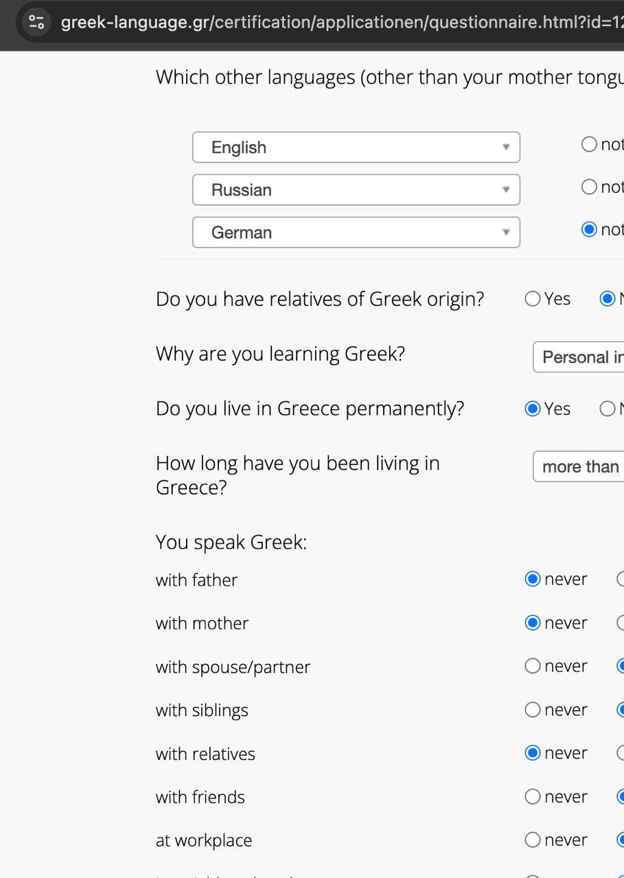 там опросник про проживание в Греции , подскажите что вы тут выбирали? По идее тут нужно было Кипр чтоб было написано..