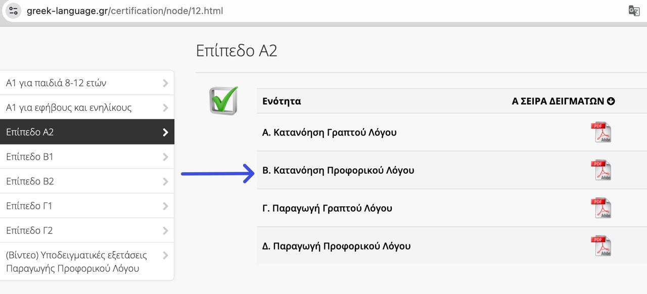 Подскажите, пожалуйста, а существует ли аудио к этому примеру (Επίπεδο Α2 / Α ΣΕΙΡΑ ΔΕΙΓΜΑΤΩΝ / Β. Κατανόηση Προφορικού Λόγου)? 😃